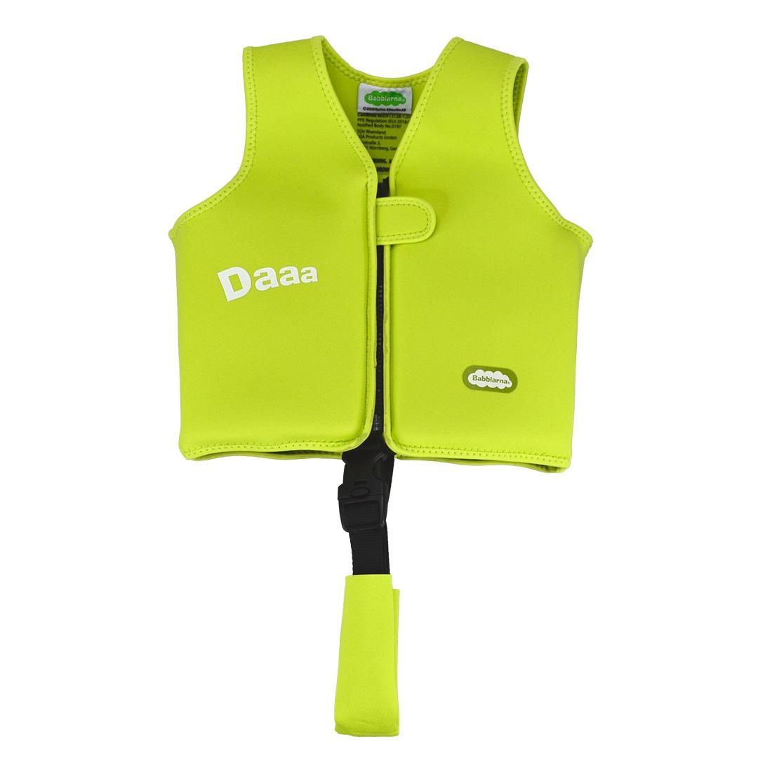 Flytkraften i simvästen kan justeras för att passa barnets vikt. Varje ficka i västen innehåller tre lager skumskivor. Man kan minska flytkraften genom att ta ut en eller två skumskivor. En skumskiva måste alltid finnas i varje ficka vid alla tidpunkter.