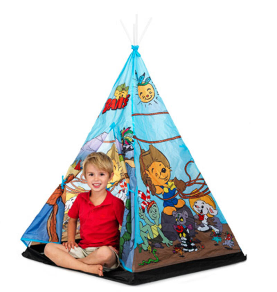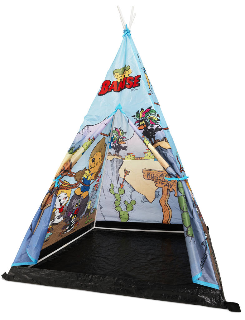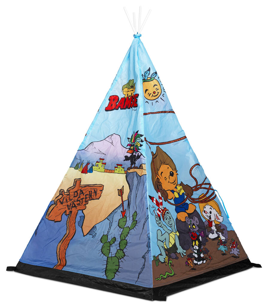 Play tent in tipie model with Bamse and his friends. Easy to assemble, instructions including. Suitable for indoor and outdoor use. Please fix the tent in to the ground when used outdoors in windy weathers. Pegs not included, available to purchase, Art nr: 34-9015