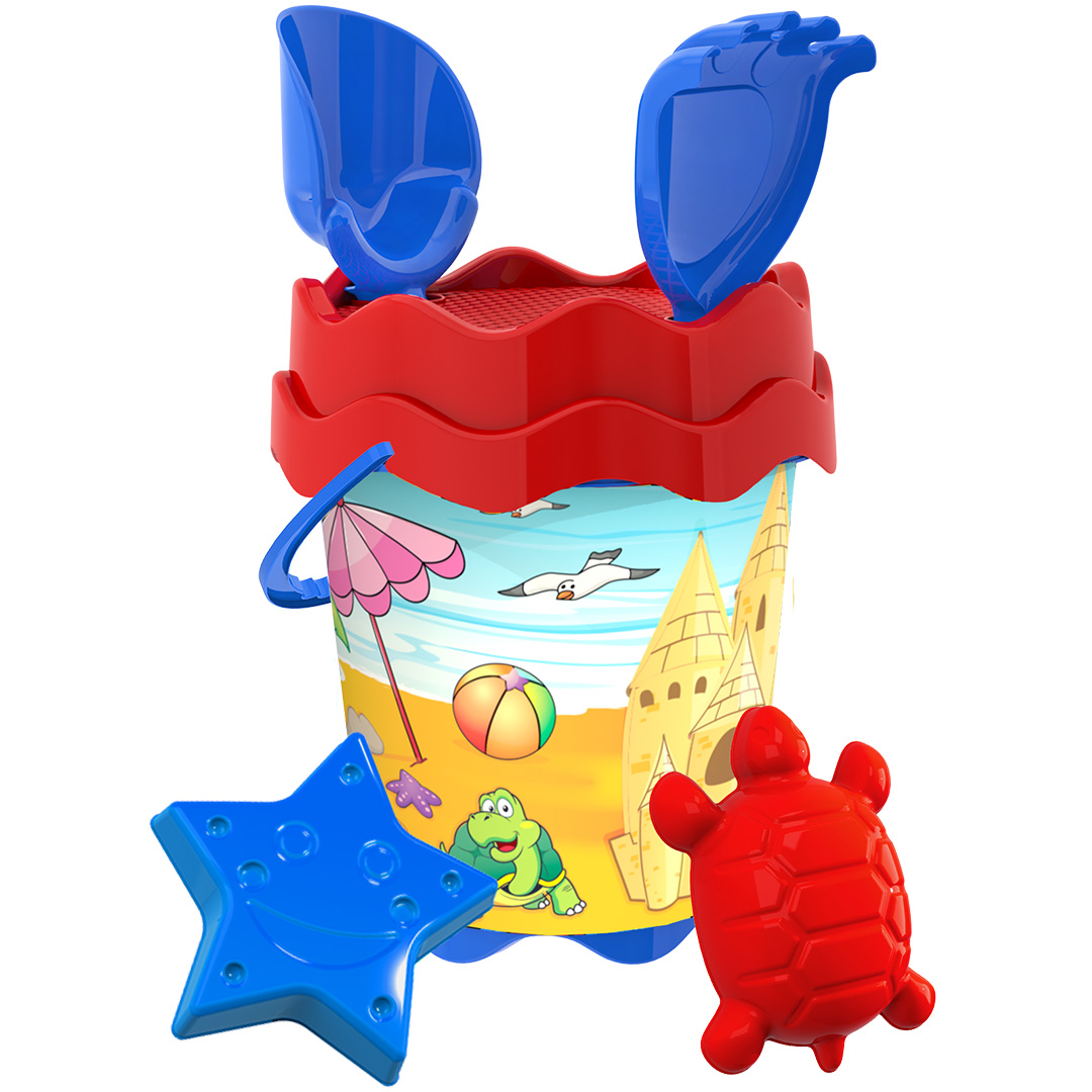 Allt som behövs för roliga dagar i sanden! Denna hink med spade, kratta, sil och två sandformar bjuder in till kreativ lek, byggande och massor av strandglädje. Perfekt för små sandbyggare som vill skapa, gräva och upptäcka! Självklart är den CE-märkt för trygg och säker lek.