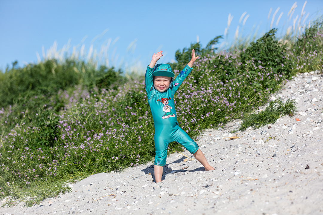 Swimpys kläder är mjuka, elastiska och snabbtorkande – perfekta att använda både i solen och i vattnet. UV-kläderna ger ett solskydd motsvarande UPF50+.