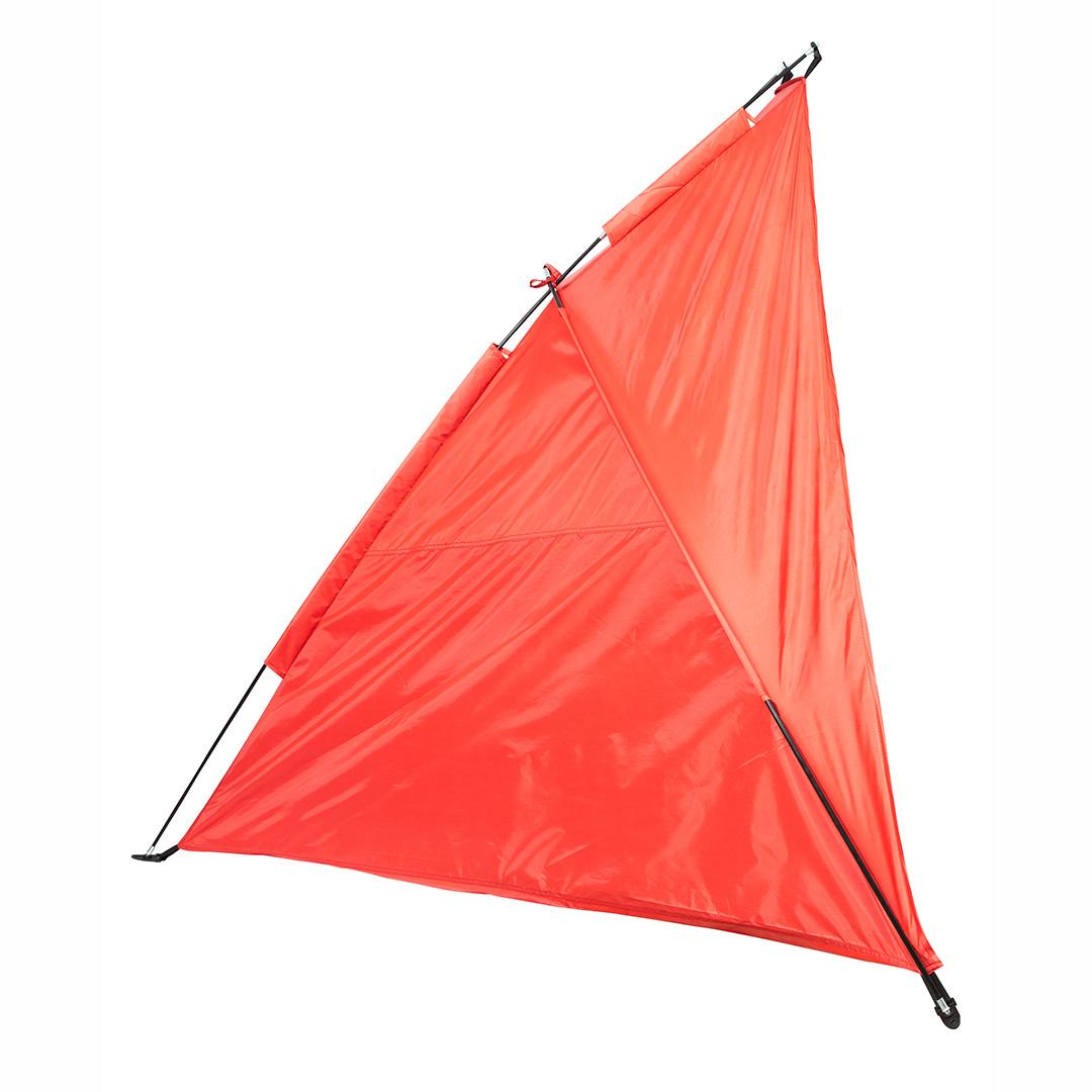 Fyra tältpinnar ingår för att fästa tältet i marken. Tältet kommer i en praktisk förvaringsväska som man kan bära på axeln.