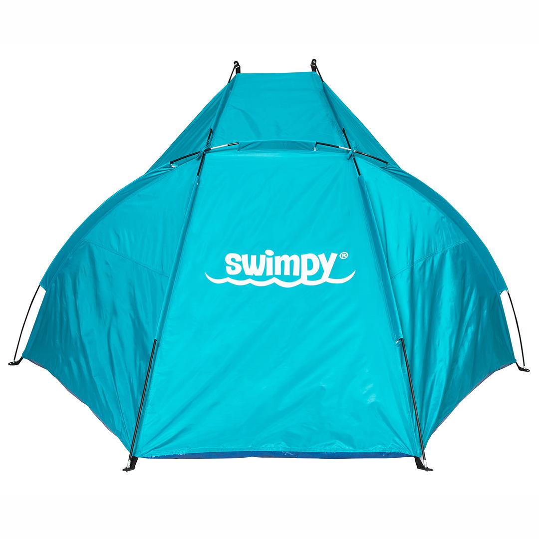 Rymligt tält från Swimpy som skyddar mot solens ultravioletta strålar (UPF50+). Vikbar stomme i tre delar av glasfiber med gummiband.